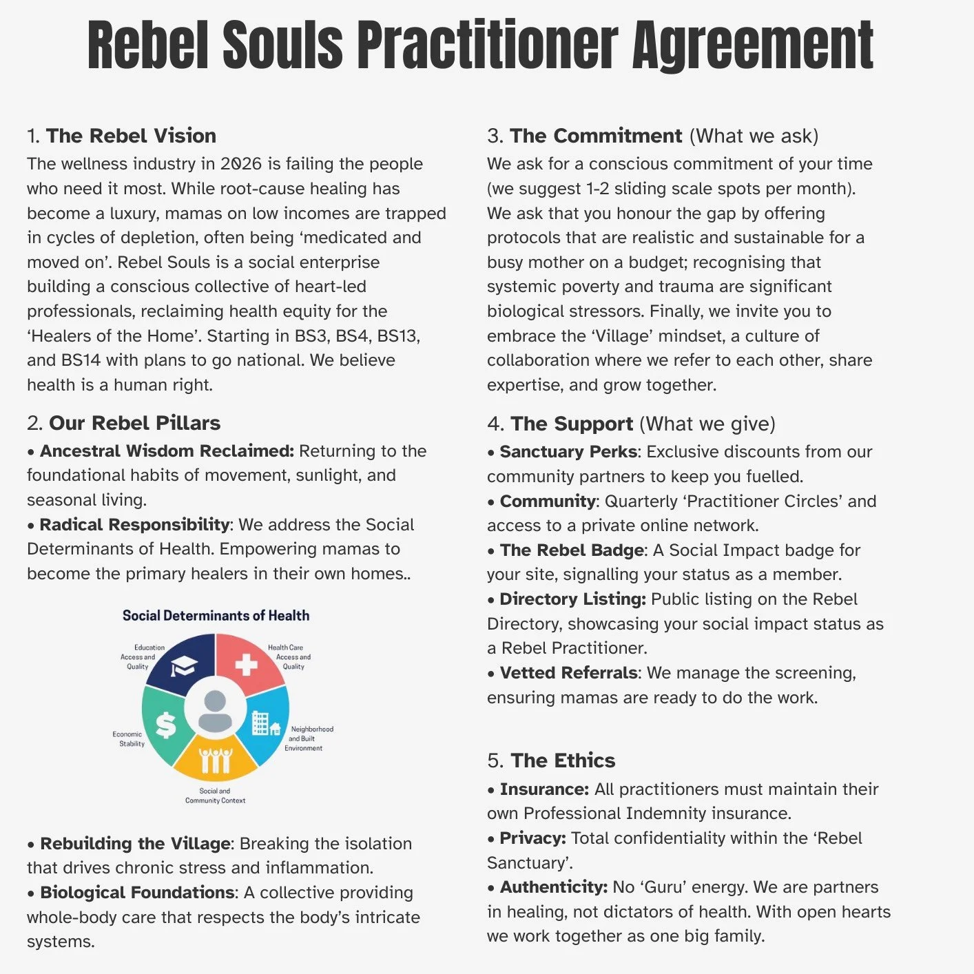 Rebel Souls Bristol is a social enterprise designed to make health justice a reality. We aren't asking you to work for free or to devalue your experience and expertise. We are asking you to join a movement to reclaim the village and bring ancestral wisdom back to our communities.